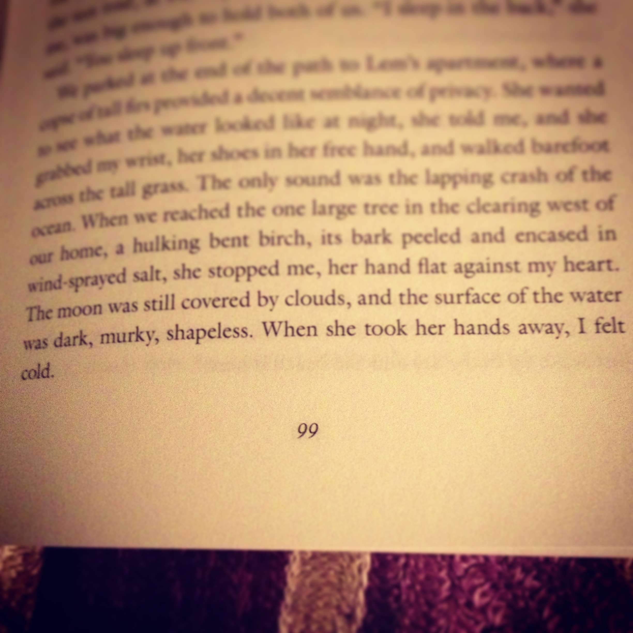 Suffice to say I loved this novel. I have not really done it justice here. While the story is beautiful and sad (it is the first book in a long time to make me well up), the language is also wonderful. The whole thing flows and ebbs like speech, and there are moments of great beauty that you have to read over and over.