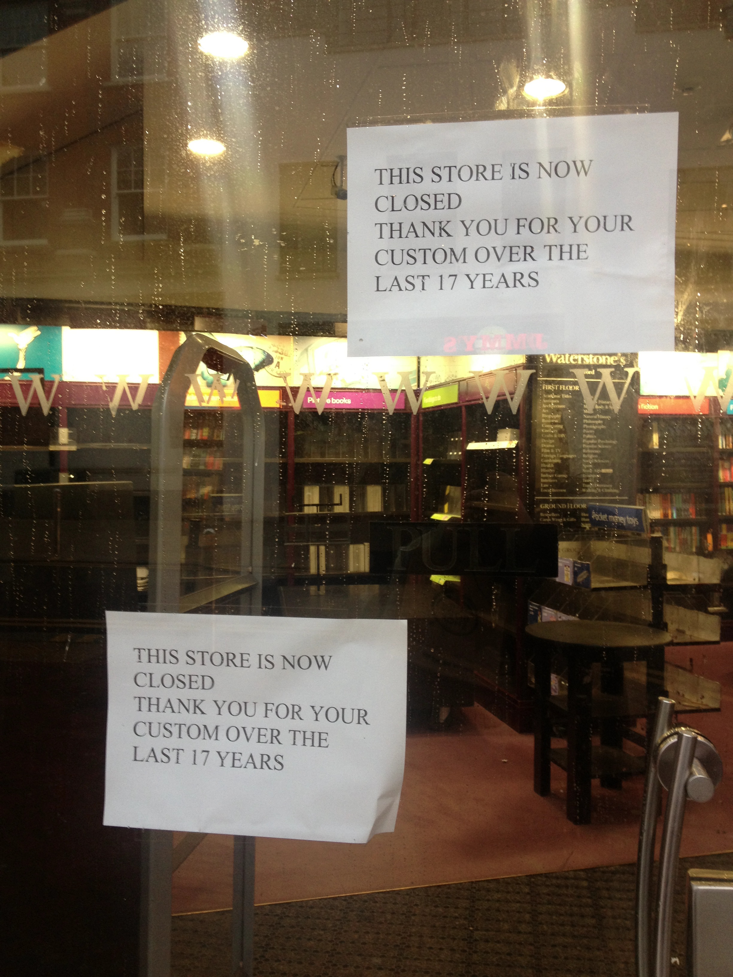 Waterstones as a company are still doing pretty well, as far as I know, so it must just be that the population of Watford and the surrounding areas don’t read a lot. SHAME ON YOU ALL! The shop had been there since the mid-nineties, so to me that indicates a decline in reading and/or book buying in recent years. I blame eReaders and people’s laziness. Finding out that my local Waterstones had closed was truly gutting; I was genuinely upset. It was a lovely big shop with three floors of books, one being entirely for children. They also sold really nice cards and gift-y things like Emma Bridgewater and Cath Kidston stuff, and arty stationery. The staff were always really polite and helpful, and I liked that one of them had also read the Hans Fallada biography I bought there. My fellow blogger Sarah Watkins worked there and had done since it opened, and I was gutted for her too.