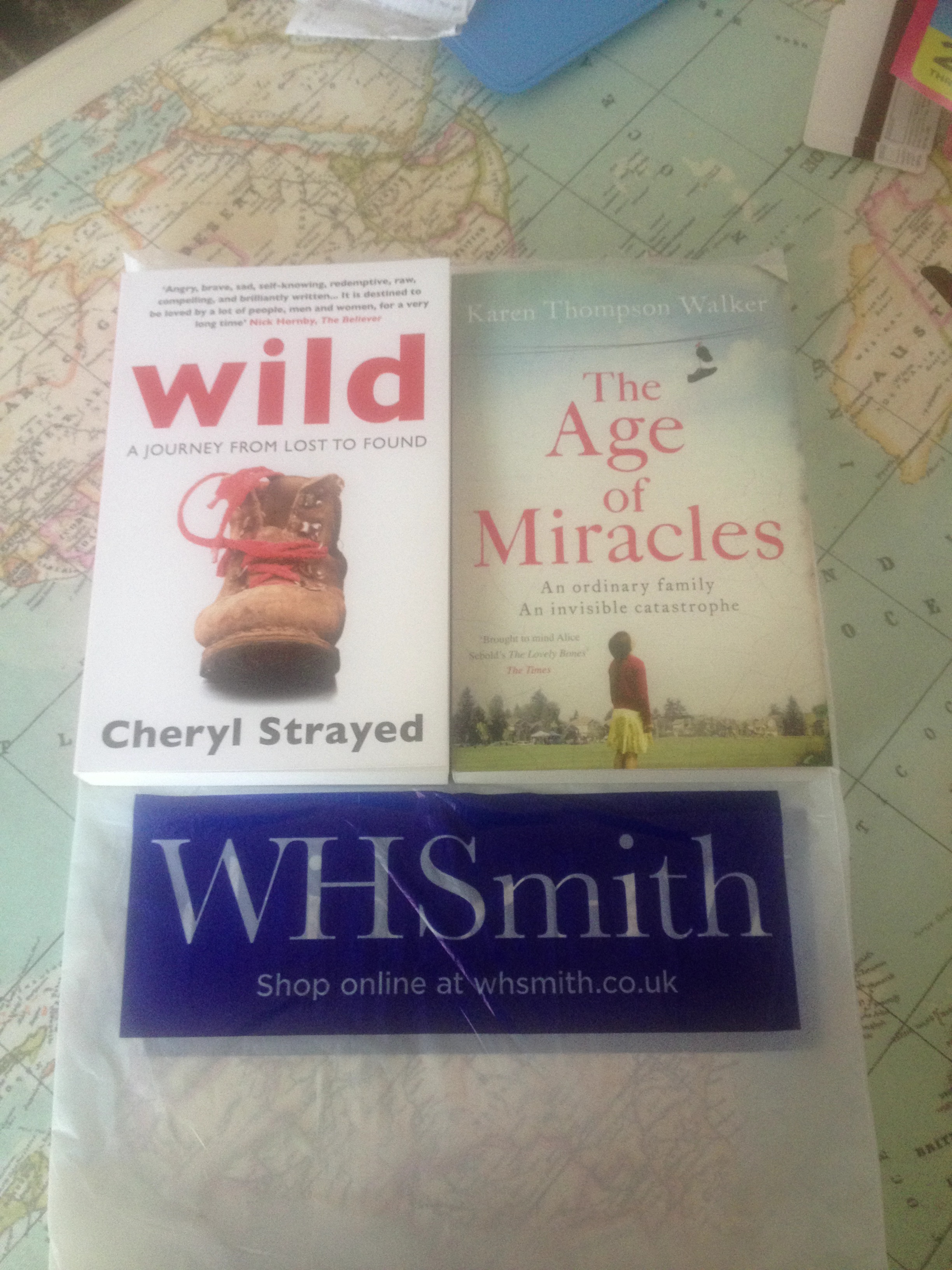Today, on the way home from looking after my little nephew, I stopped in at WHSmith. I saw the poster for their summer promotions in the window, and remembered that I had wanted to read The Age of Miracles by Karen Thompson Walker for a while, so I went in. This was the one in Pinner, north west London. It has a decent size book section at the back on the left, but like all WHSmith shops the books on offer are displayed proudly with covers out, while the rest are jammed in the bookshelves and you can’t really browse comfortably.