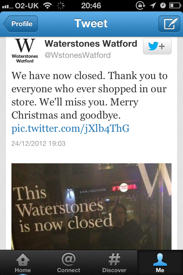 We used to have a big Waterstones near me in Watford town centre and I popped in there almost every time I was in Watford, even if I didn’t buy anything (should have bought more things, clearly). It closed just before Christmas (I saw the tweet announcing this on Christmas Eve, real mood killer), and since then I have visited the big Waterstones in Piccadilly for a book event and once or twice when shopping, but that’s it.