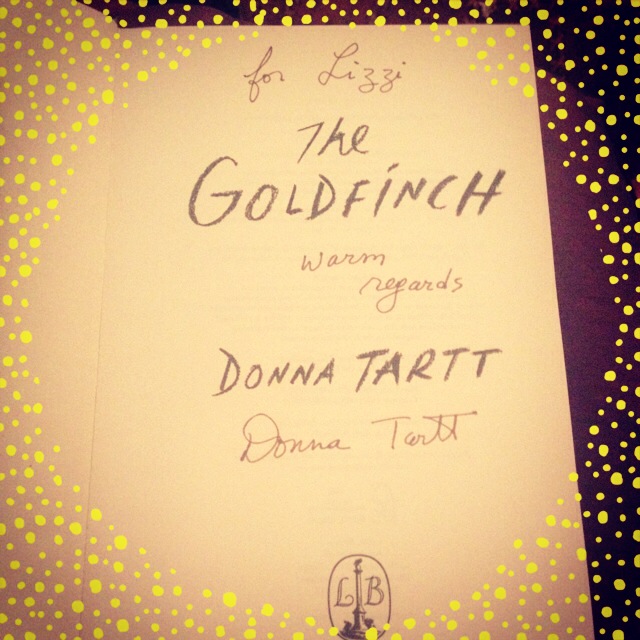 After the event there was a signing. I queued, nervous, clutching my huge hardback copy of The Goldfinch. What would I say? What would she say? As she wrote my name and her own, I told Donna Tartt that The Secret History was my favourite book and I thanked her for her work; she looked so pleased, and she shook my hand.